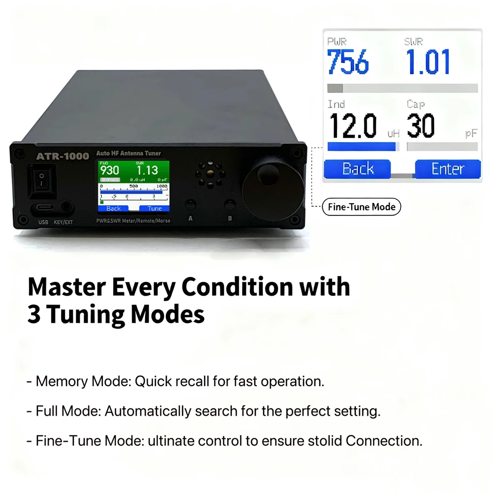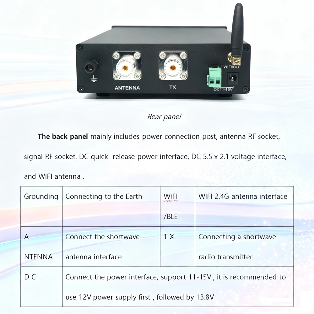 Supports the full shortwave frequency band of 1.8-30MHz, can be automatically tuned, and is suitable for various antenna types such as end-feed, vertical, inverted V, and Yagi.