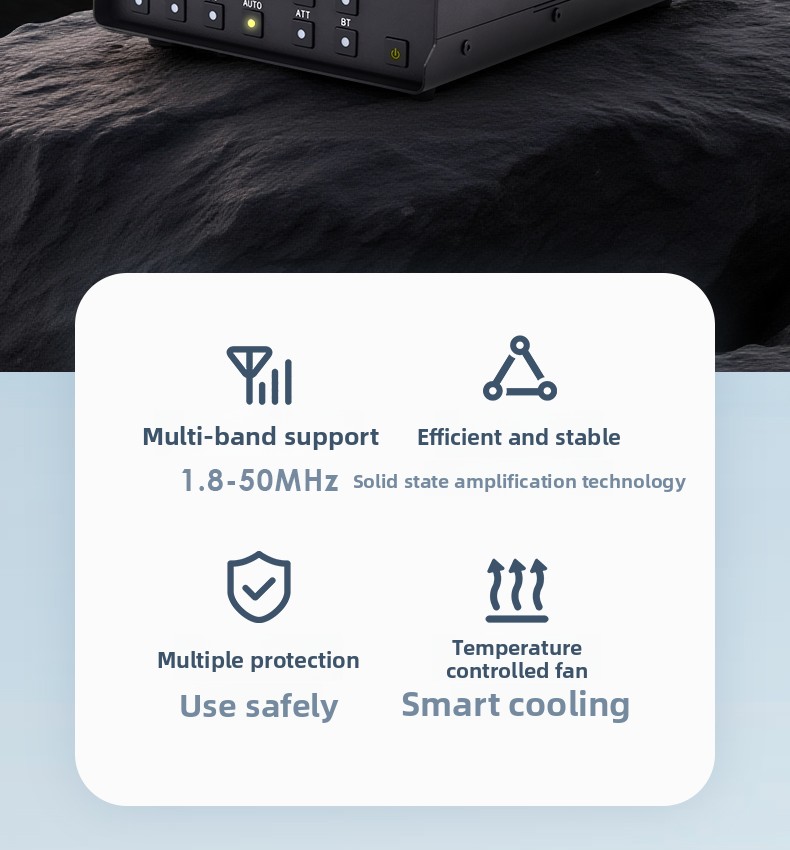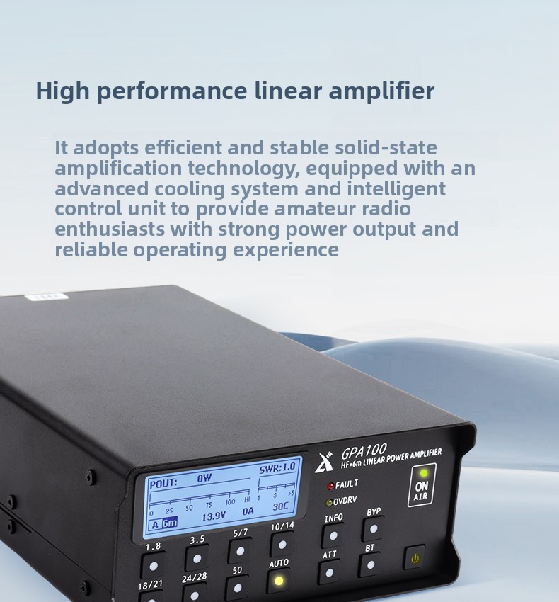 – GPA100 adopts efficient and stable solid-state amplification technology, equipped with advanced cooling system and intelligent control unit, providing strong power output and more reliable operation experience for amateur radio enthusiasts. The new circuit design makes the amplifier have lower distortion and higher efficiency, and can maintain excellent signal quality even when running at full power.
