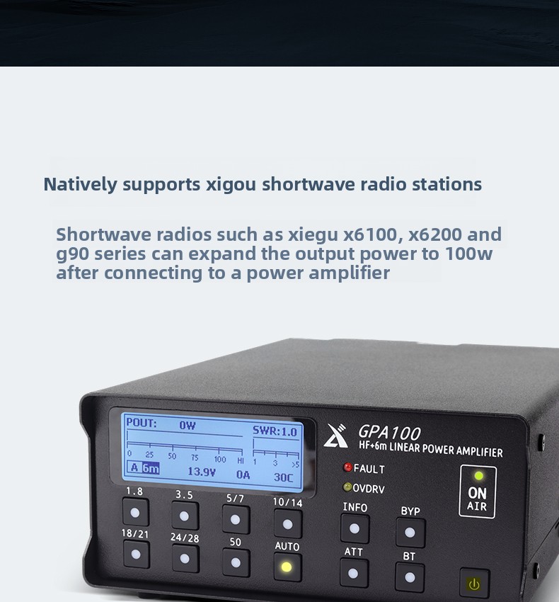 XIEGU GPA100 100W Solid State Linear Power Amplifier 1.8-50MHz Amateur High Performance RF Amplifier