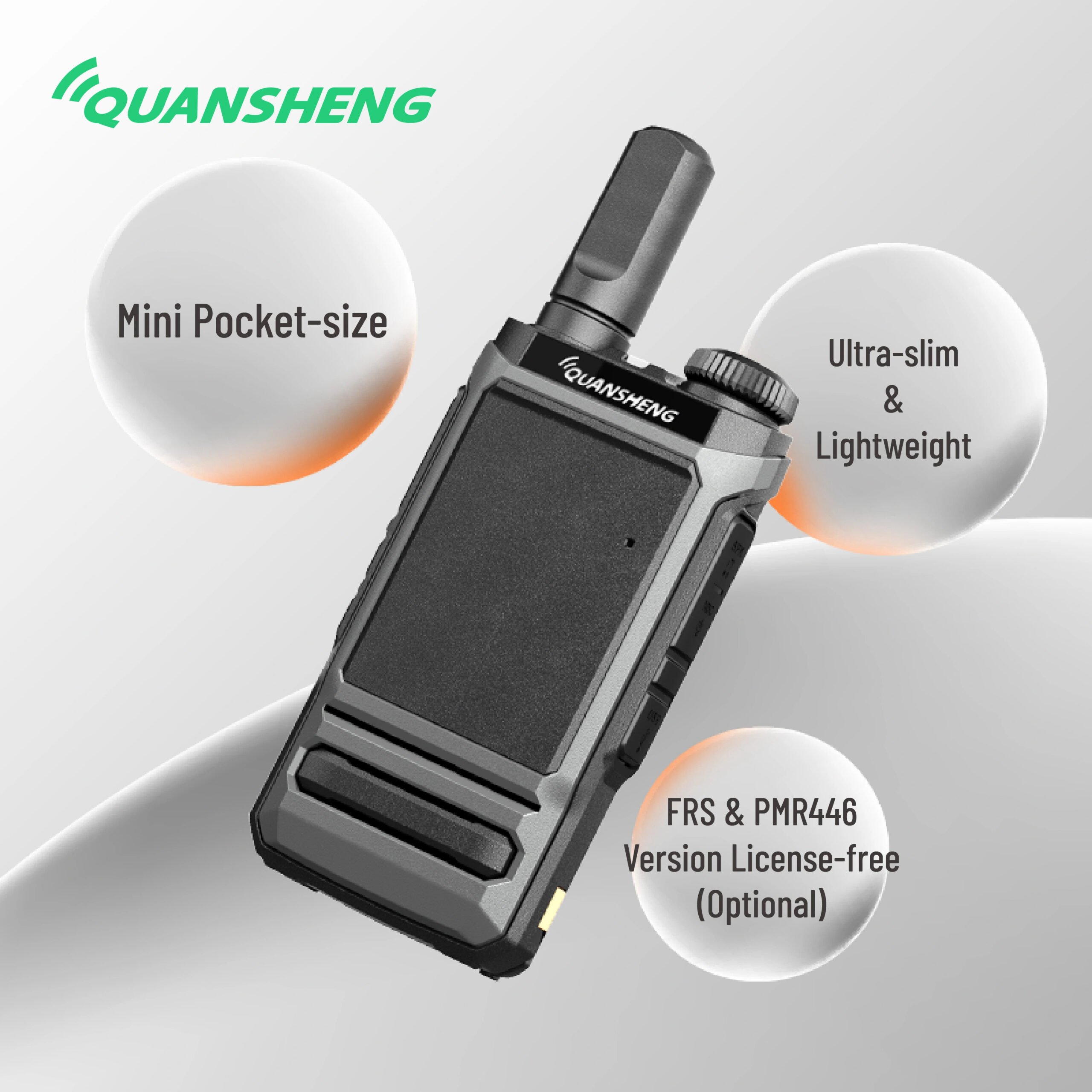 The Quansheng TG-S2 is an ultra-compact pocket-sized UHF two-way radio (400-470MHz, 2W) with FCC & CE certifications for reliable, legal use worldwide. Perfect for everyday carry, short-range communication in warehouses, events, or light outdoor activities. Its tiny form factor (fits in your pocket) makes it the top choice for beginners and pros in 2026.
